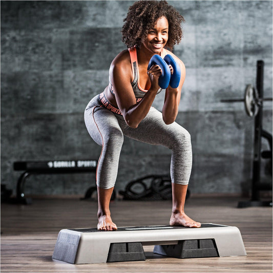 Gli stepboard sono regolabili in altezza, consentendo di regolare individualmente l'intensità dell'allenamento. Che tu sia un principiante o un esperto, troverai lo stepboard più adatto alle tue esigenze da Gorilla Sports DE.