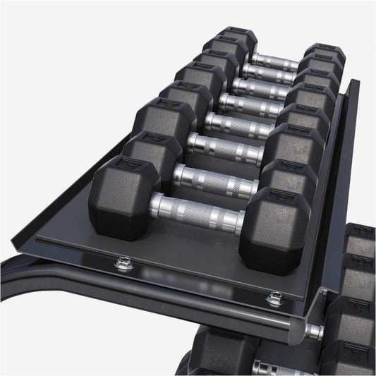 Certo, potresti posizionare i pesi sul pavimento. Lo svantaggio: minore comfort di allenamento e rischio di antiestetiche ammaccature sul pavimento. È molto più pratico utilizzare uno dei moderni e stabili rack per manubri. Sono disponibili in diverse versioni e spesso possono essere adattati alle proprie esigenze individuali. In breve: un must assoluto per ogni atleta di forza.