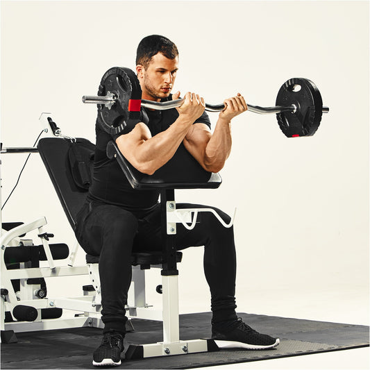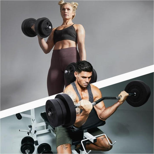 Versatilità: Grazie ai vari dischi e barre, puoi regolare il peso in base ai tuoi progressi e ai tuoi obiettivi di allenamento.