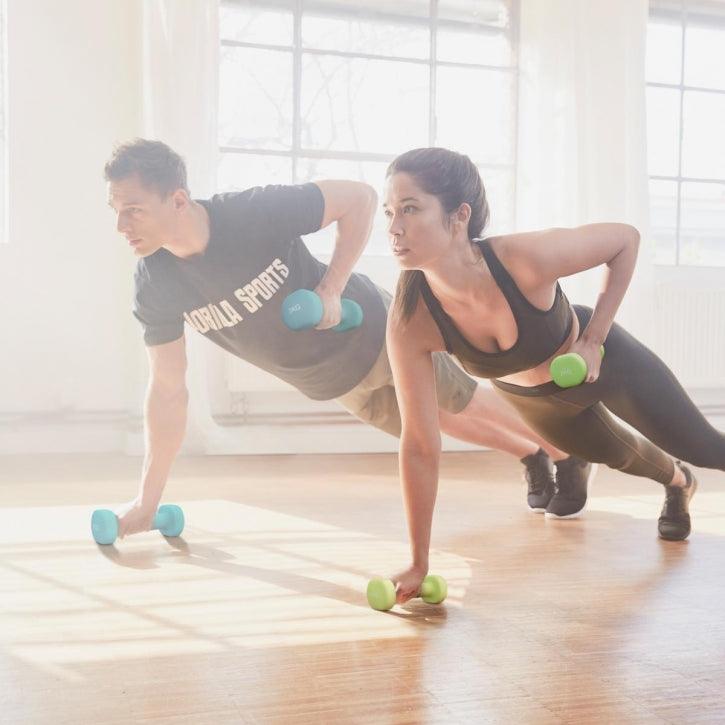 I manubri con un peso compreso tra uno e tre chili sono generalmente accessori per l'allenamento aerobico. Tuttavia, questo non significa che non si possano usare anche per il classico allenamento di forza.