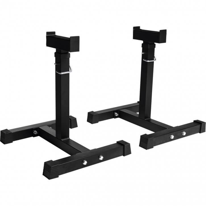Allenati in sicurezza senza sovraccaricare la schiena con il rack per bilancieri Gorilla Sports. Perfetto dopo esercizi intensi come shoulder press o curl per bicipiti, garantisce stabilità, comfort e protezione per il pavimento, permettendoti di sollevare e appoggiare i bilancieri senza rischi.