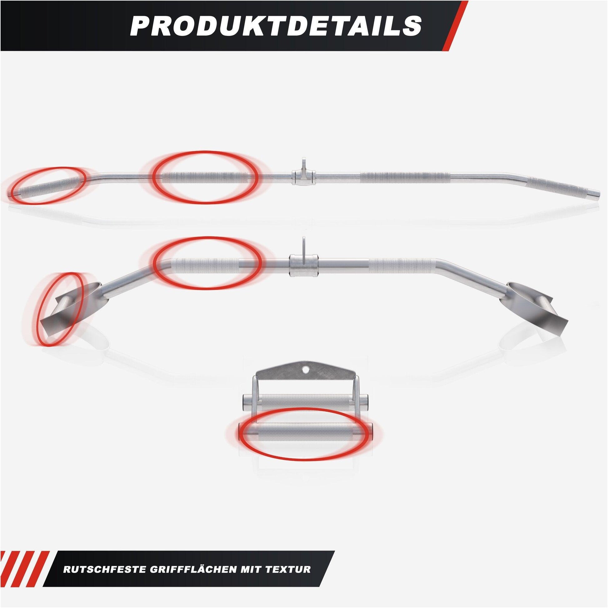 Con le diverse maniglie del set di maniglie cromate per vogatore, puoi aggiungere numerosi esercizi aggiuntivi al tuo allenamento per la schiena. Le diverse varianti di maniglie offrono molte nuove opzioni per rendere il tuo allenamento per la schiena più entusiasmante, intenso e divertente.